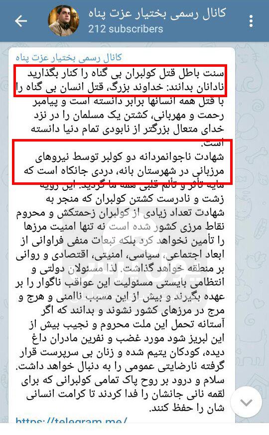 – حمایت از پدیده شوم قاچاق و تاختن به نیروهای مرزبانی، انتظامی و قاتل خطاب کردن آنان و همچنین استفاده از واژه شهید برای قاچاقچیان کشته شده توسط نیروهای مرزبانی.
