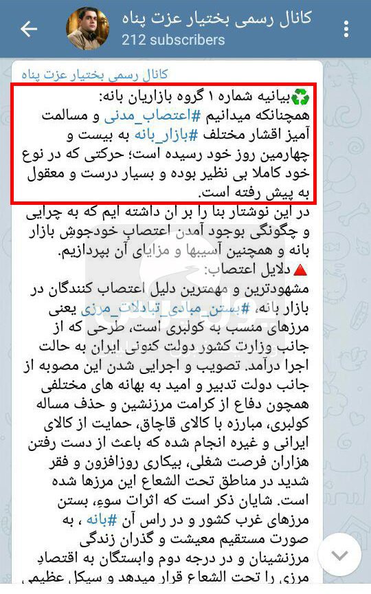 – جلوه دادن اخلال در نظم عمومی و اقتصاد در کشور در شهرستان بانه توسط طرفداران گروه‌های تروریستی تحت عنوان اعتصاب مدنی و مسالمت‌آمیز