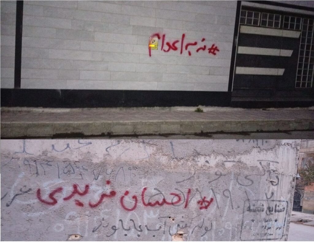 GADTB: Ərdəbildə noyabrın 6-da bir qrup azərbaycanlı fəal Ehsan Fəridinin qeyri-insani ölüm hökmünə etiraz olaraq şüarlar yazılıb.