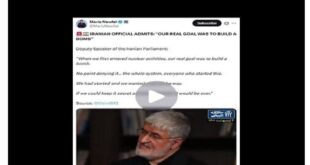 GADTB: ABŞ prezidenti Donald Tramp özünün “Truth Social” sosial şəbəkəsində İran parlamentinin keçmiş vitse-spikeri Əli Mütəhhərinin yer aldığı və İslam Respublikasının #nüvəbombası yaratmaq istəyindən birbaşa bəhs edən video yayımlayıb. Videoda Mütəhhəri iddia edir ki, İranın nüvə proqramının ilkin məqsədi çəkindirici qüvvə yaratmaq olub: “Biz bomba hazırlamaq istəyirdik, lakin bunu gizli …