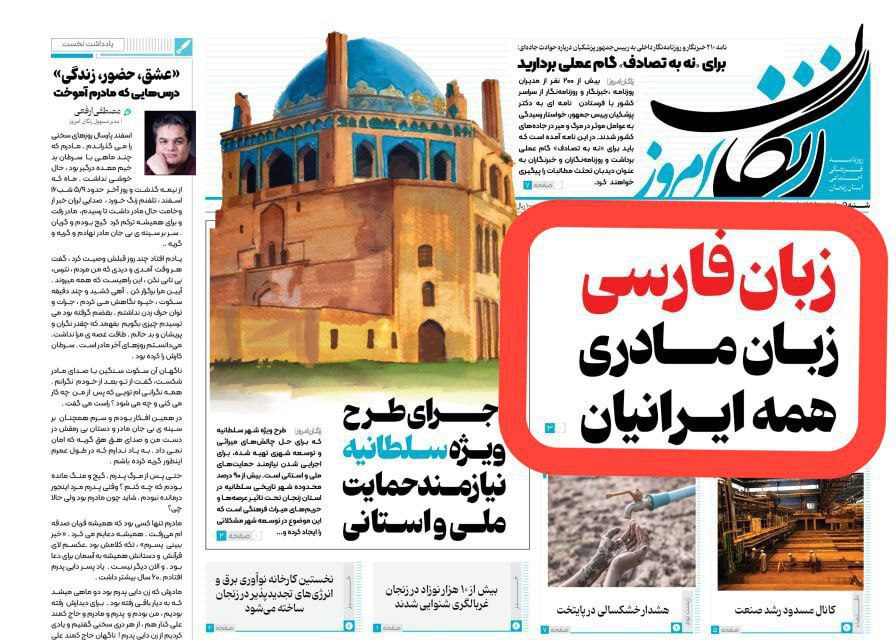 گادتب: روزنامه ایرانشهری زنگان امروز با تیتر «زبان فارسی، زبان مادری همه ایرانیان» بار دیگر نشان داد که سیاست اصلی رژیم چیزی جز تحریف واقعیتهای تاریخی و انکار هویتهای غیرفارسی نیست. این تیترهای نژادپرستانه در حالی آزادانه منتشر میشوند که مطبوعات و فعالان هویتخواه آزربایجان با سرکوب شدید، سانسور و فشارهای امنیتی مواجهاند.