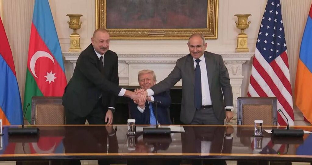 گادتب: رئیسجمهور جمهوری آذربایجان و نخستوزیر جمهوری ارمنستان، در نشستی تاریخی به میزبانی ایالات متحده آمریکا و با حضور رئیسجمهور این کشور، بیانیهای مشترک برای پیشبرد صلح، عادیسازی روابط و آغاز پروژههای ارتباطی منطقهای امضا کردند.