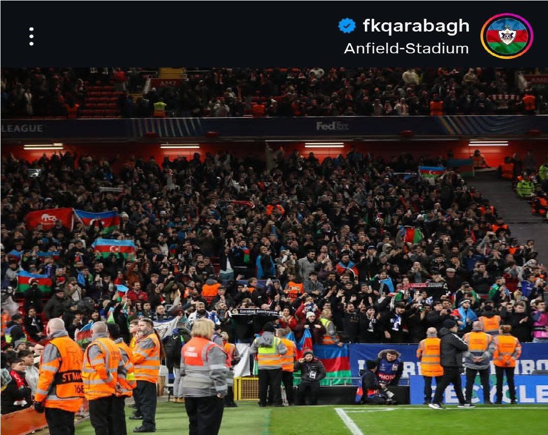 گادتب: در جریان دیدار تیم‌های قاراباغ آزربایجان و لیورپول در ورزشگاه آنفیلد، هواداران با به اهتزاز درآوردن پرچم تراختور آزربایجان در کنار پرچم مقدس آزربایجان، صحنه‌ای نمادین و پرمعنا رقم زدند.