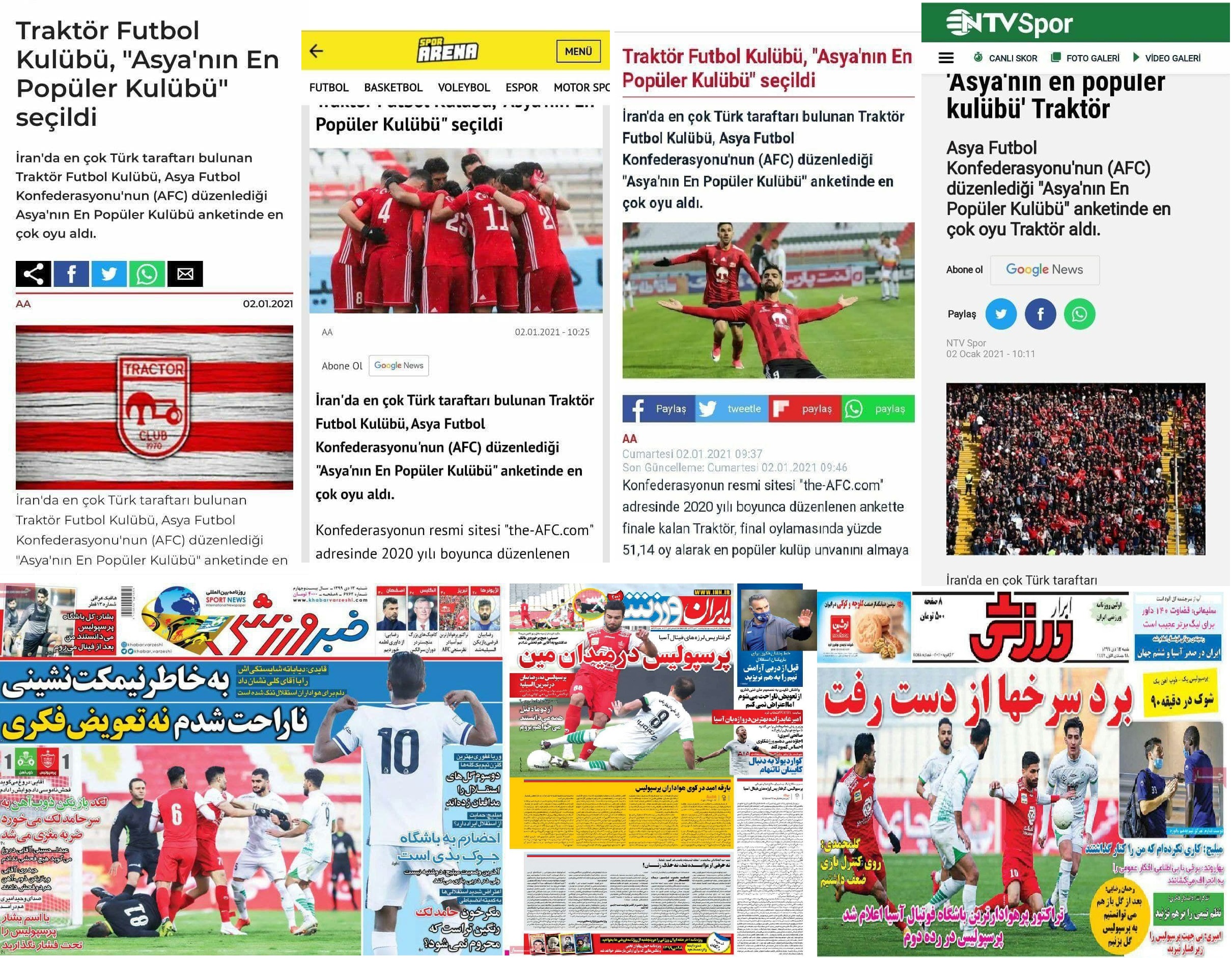 خبر افتخارآفرینی باشگاه تیراختور آذربایجان در نظرسنجی سایت کنفدراسیون فوتبال آسیا که در صفحه اول رسانههای ورزشی دیگر کشورها علیالخصوص رسانههای ترکیه قرار گرفت، مطابق انتظارات جایی در نشریات ورزشی جغرافیای ایران نداشته است!