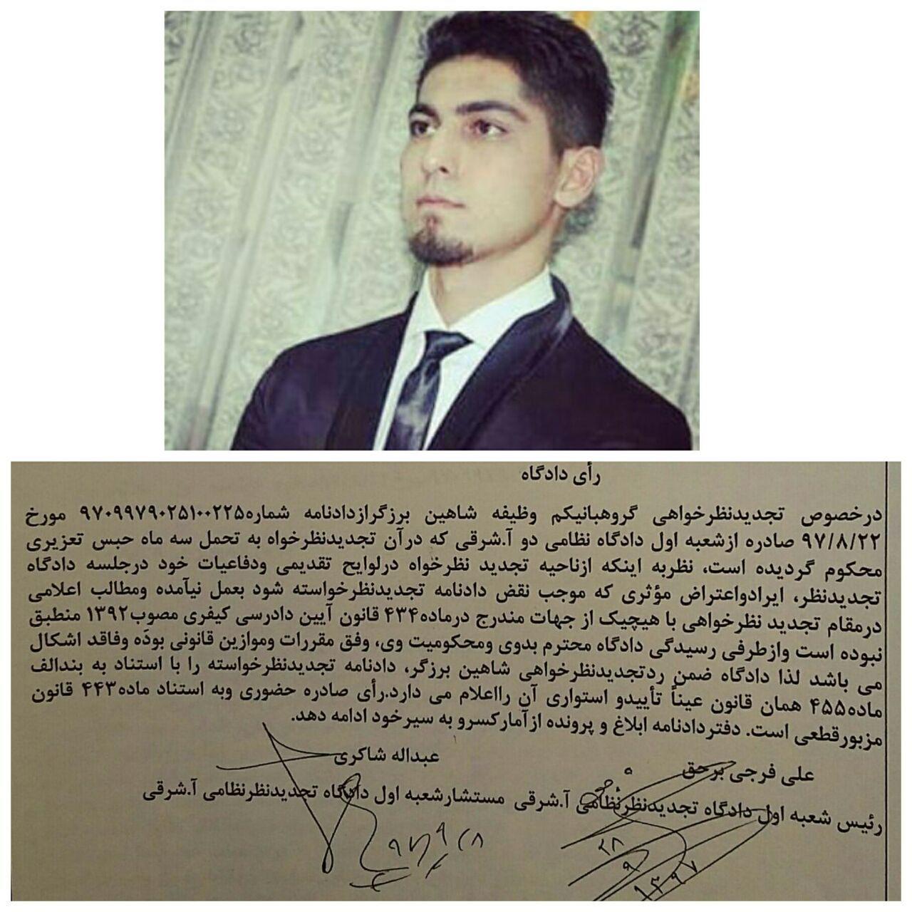در تجدید نظر خواهی پرونده شاهین برزگر از فعالین ملی مدنی آزربایجان حکم۳ماهه حبس توسط قاضی “علی فرجی برحق” ریاست شعبه اول دادگاه تجدید نظر نظامی رژیم در آزربایجان شرقی عینا تایید شد.