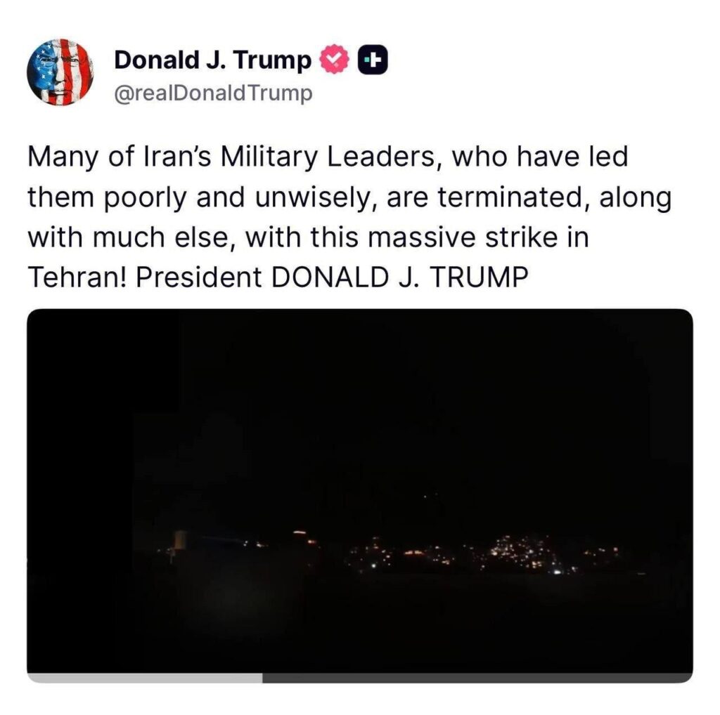 دونالد ترامپ در پیامی در شبکههای اجتماعی مدعی شد که تعدادی از فرماندهان نظامی ایران که به گفته او «رهبری ضعیف و نادرستی داشتهاند»، در جریان حملهای بزرگ به پایتخت ایران کشته شدهاند. وی در این پیام تأکید کرده که این عملیات با «قدرت گسترده» انجام شده است.