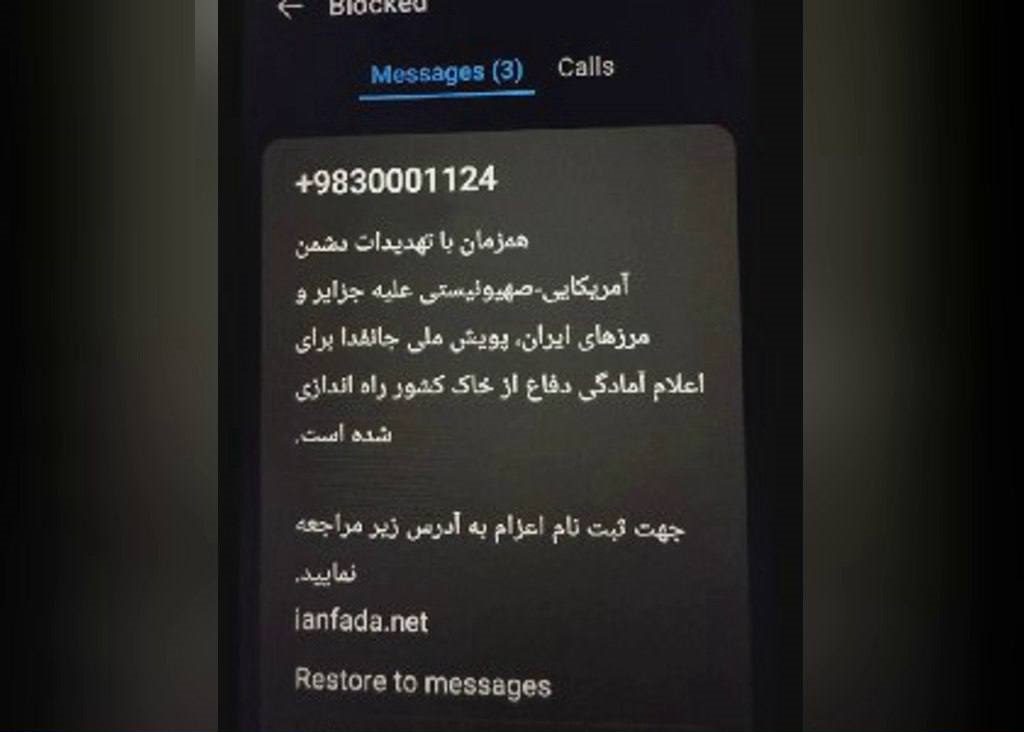 گادتب: پیامکی با عنوان پویش ملی «جانفدا» برای شماری از شهروندان ارسال شده است. در این پیام از مخاطبان خواسته شده برای «دفاع از خاک کشور» در سایت janfada.net ثبتنام کنند.