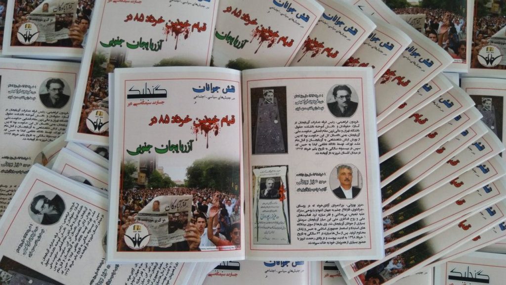 توزیع کتابچه «گنجلیک» به مناسبت قیام خونین خرداد ۸۵ آزربایجان، در شهرهای آزربایجان جنوبی – تصاویر