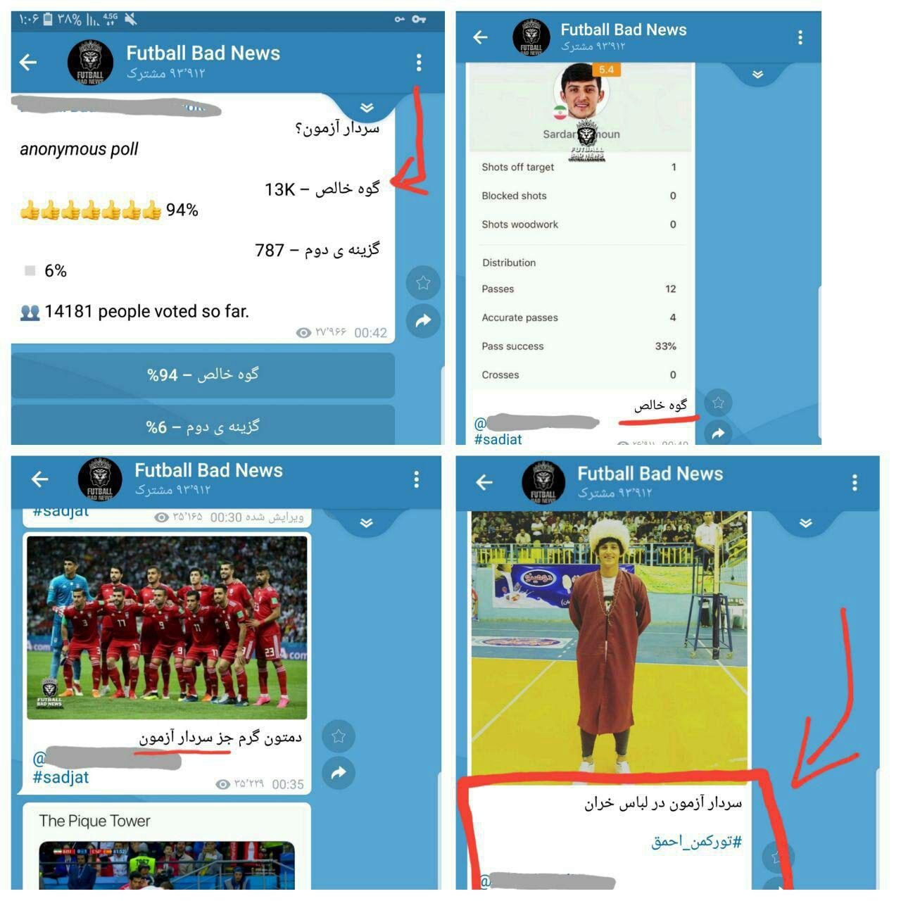سردار آزمون بازیکن ترکمن شب گذشته در پایان دیدار تیم ایران با اسپانیا در شرایطی که اشک می ریخت از توهین های نژادپرستانه فارس زبان ها بر علیه وی انتقاد کرد. وی در جمع خبرنگاران گفت: «بازی سختی برابر اسپانیا داشتیم. آنها تیمی قدرتمند و متشکل از بازیکنان بزرگ هستند. تلاش کردیم تا برابر آنها بازنده نباشیم اما شانس یار ما نبود و آنها موفق به گلزنی شدند.»