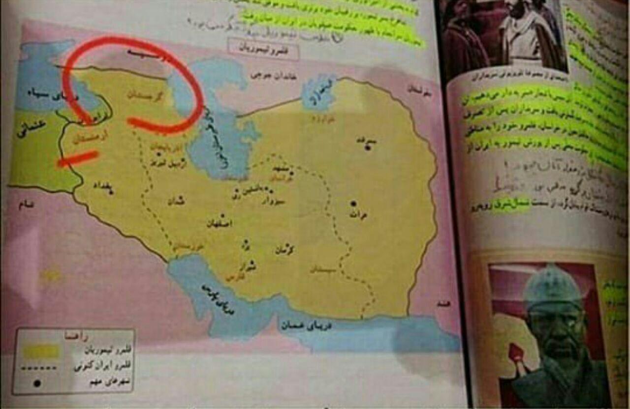 _در این نقشه آزربایجان در داخل ایران امروزی قرار دارد و بطور غیر مستقیم کشور آزربایجان از نظر مخاطبان متاثر از این تصویر وجود نخواهد داشت.
