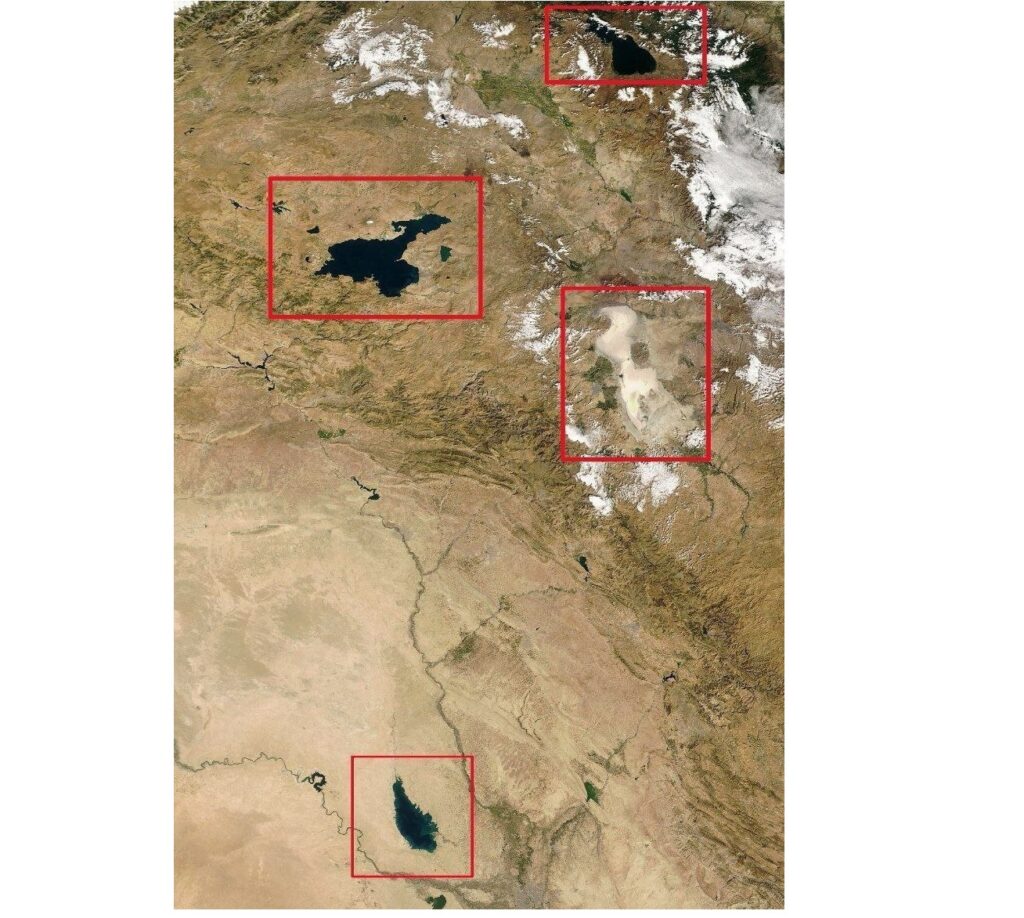 گادتب: تصاویر دریافتی از ماهواره که دریاچههای ۳ کشور همسایه را طی مهرماه با ما مقایسه میکند: