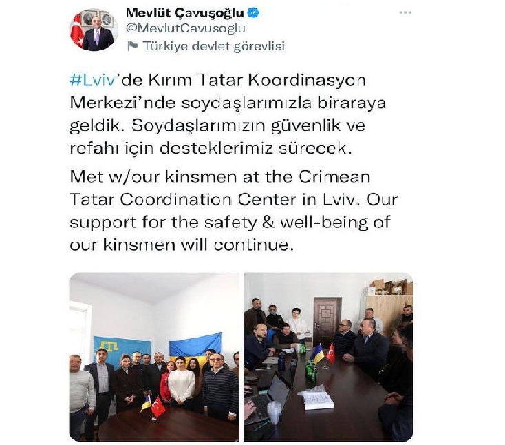گادتب: به گزارش مرکز خبر گادتب، مولود چاووشاوغلو، وزیر خارجه تورکیه در سفر به اوکراین با جمعی از تاتارهای کریمه در مرکز هماهنگی تاتارها در لیویو دیدار کرد.