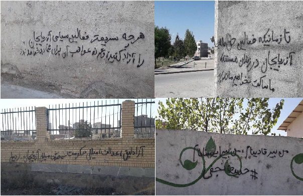 گادتب: به گزارش مرکز خبر گادتب، در پی اعتراضات، جمعی از فعالین آزربایجانی در حمایت از فعالین بازداشتی در شهرهای مختلف آزربایجان و فعالین محبوس در زندانهای ایران و دفاع از حقوق زنان و حقوق ضایع شده ملت آزربایجان با دیوار نویسی گسترده در شهر اردبیل خواستار آزادی فوری فعالین محبوس در زندانهای آزربایجان شدند.