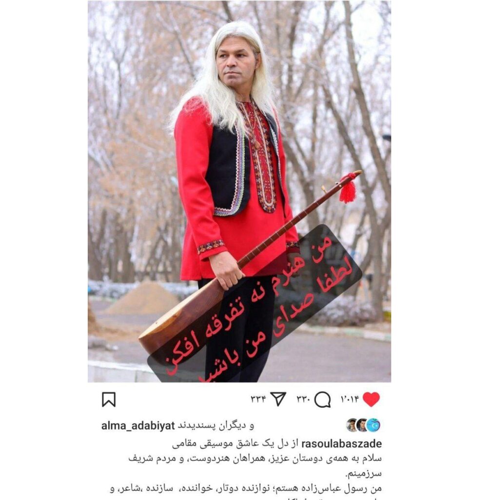 این شاعر و نوازنده شناخته شده تورک خراسانی در اینستاگرامش با انتشار مطبی در این باره نوشت: