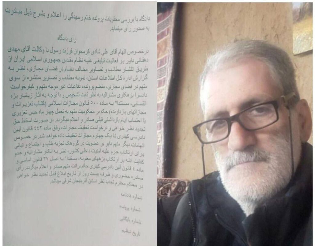گادتب: به گزارش مرکز خبر گادتب، علی شادی فعال سیاسی و ملی آزربایجان با وکالت مهدی دهقانی در تبریز توسط دادگاه انقلاب جمهوری اسلامی ایران به چهار ماه حبس محکوم شد