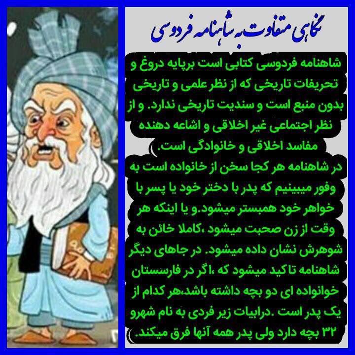 گادتب: شاهنامه کتابی که از لحاظ اجتماعی وانسانی بی محتوا است و از نظر علمی و تاریخی نیز بدون منبع است و سندیت ندارد.از نظر اجتماعی فقط صد بیت شعر از فردوسی موجود است که آن هم شکایت شاعر از مردم و پادشاه است که به وی آب و غذا نمیدادند. اکثر شاعران هم عصر فردوسی دروغ گو و یاوه گوئې او را نوشته اند.
