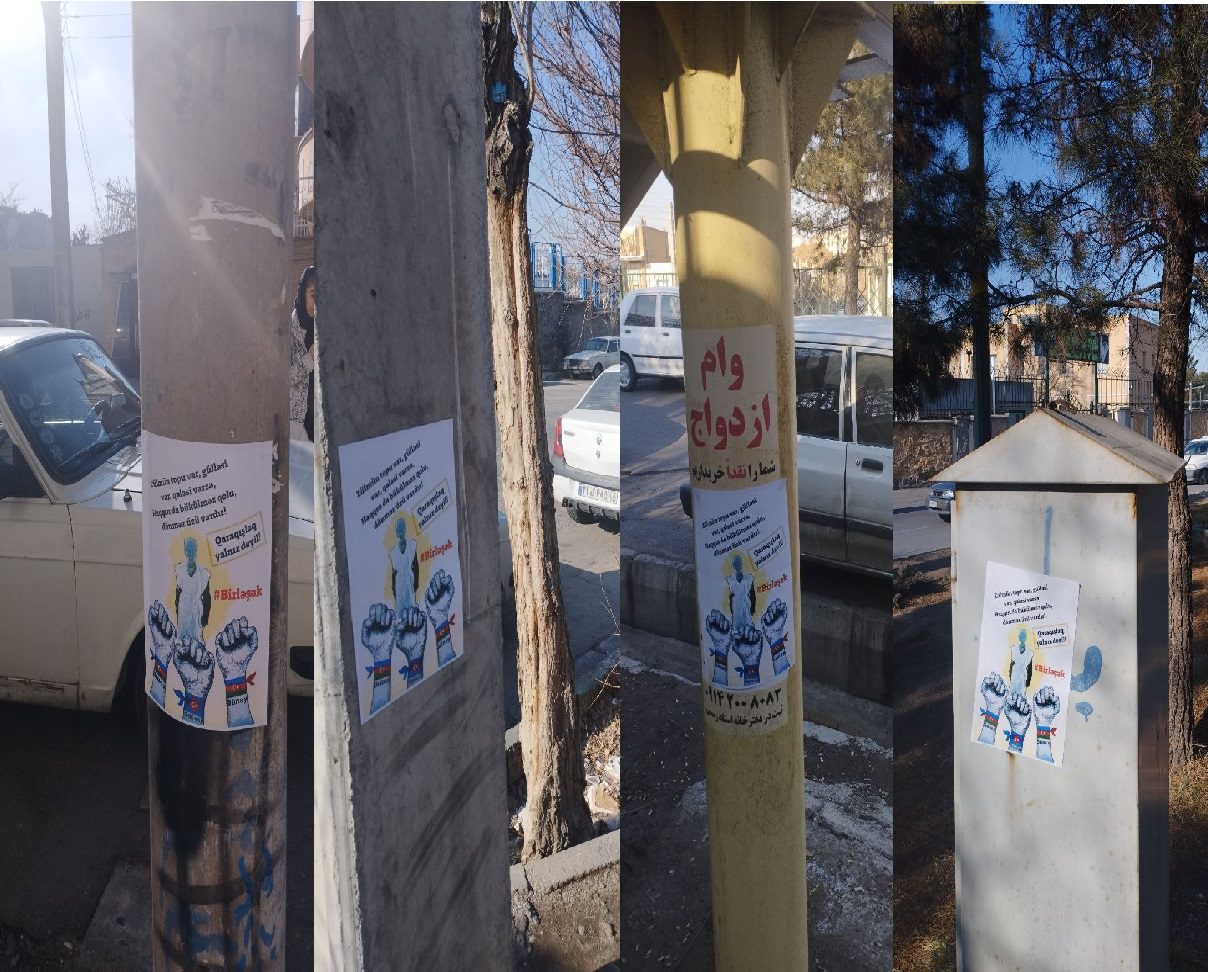 نصب و توزیع پوستر در حمایت از‌ قارا‌ قیشلاق؛ قارا قیشلاق یالنیز دئییل
