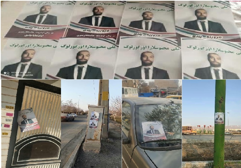 نصب پوستر روزبه پیری در سطح شهر تبریز؛ میللی محبوسلارا اؤزگورلوک