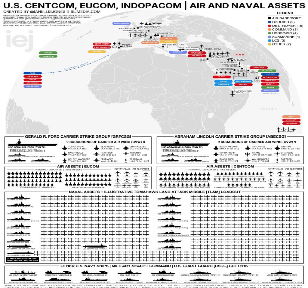 وزارت دفاع ایالات متحده این هفته را صرف گردآوری یک نیروی بسیار بزرگ در اروپا و خاورمیانه کرده است و تنها در همین هفته بیش از ۱۰۰ هواپیما وارد منطقه شدهاند، در حالی که تنشها با ایران ادامه دارد.