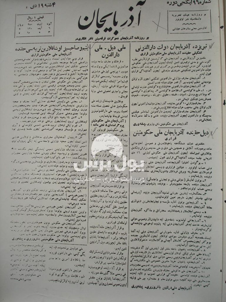 تصویب تاسیس دانشگاه تبریز – روزنامه آذربایجان ۱۹ دی ماه ۱۳۲۴