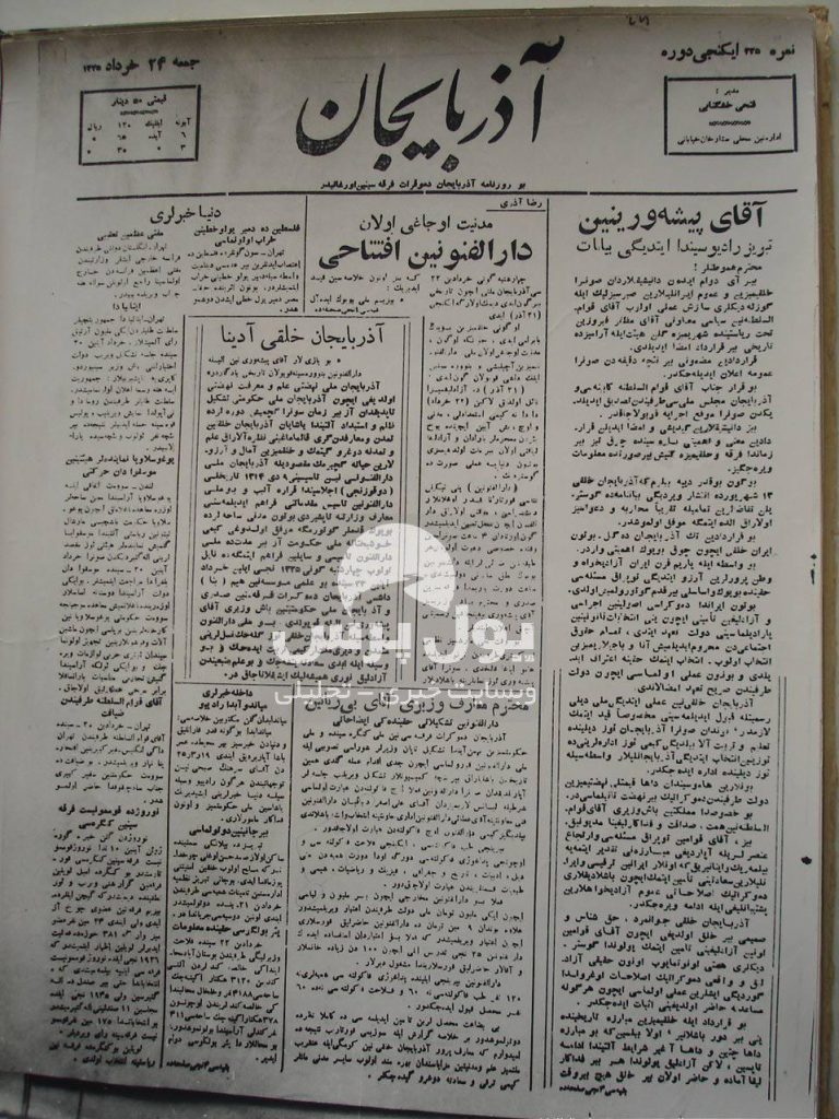 افتتاح دانشگاه تبریز – روزنامه آذربایجان ۲۴ خرداد ۱۳۲۵