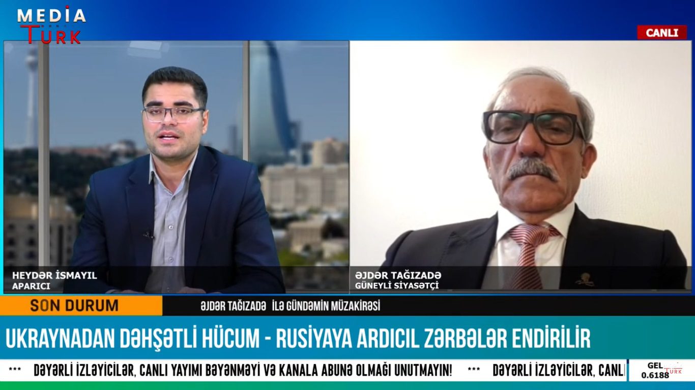 گادتب-نین مطبوعات مرکزینه داخیل اولان معلوماتا گؤره، گونئی آذربایجان دئموکراتیک تورک بیرلیگینین (گادتب) باشقانی سایین اژدر بی تاغیزاده «مئدیا تورک تی وی»-ده «اوکراینادان دهشتلی هوجوم – روسییایا آردیجیل ضربهلر ائندیریلیر» موضوعسوندا چیخیش ائدیب.