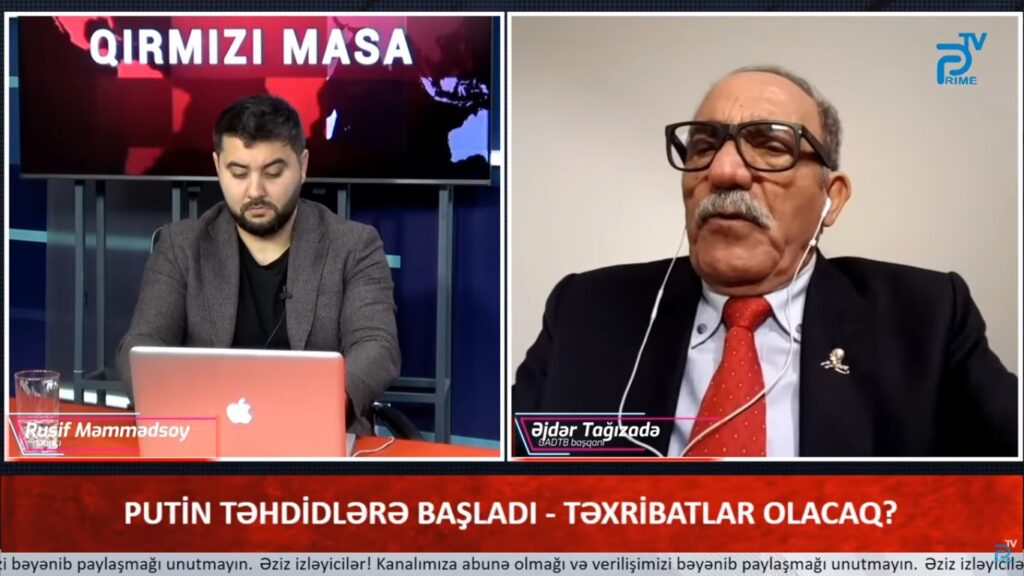 گادتب-نین مطبوعات مرکزینه داخیل اولان معلوماتا گؤره، گونئی آذربایجان دئموکراتیک تورک بیرلیگی (گادتب) باشقانی سایین اژدر بی تاغیزاده «پرایم تی وی»-ده «پوتین تهدیدلره باشلادی – تخریباتلار اولاجاق؟» موضوعسوندا چیخیش ائدیب.
