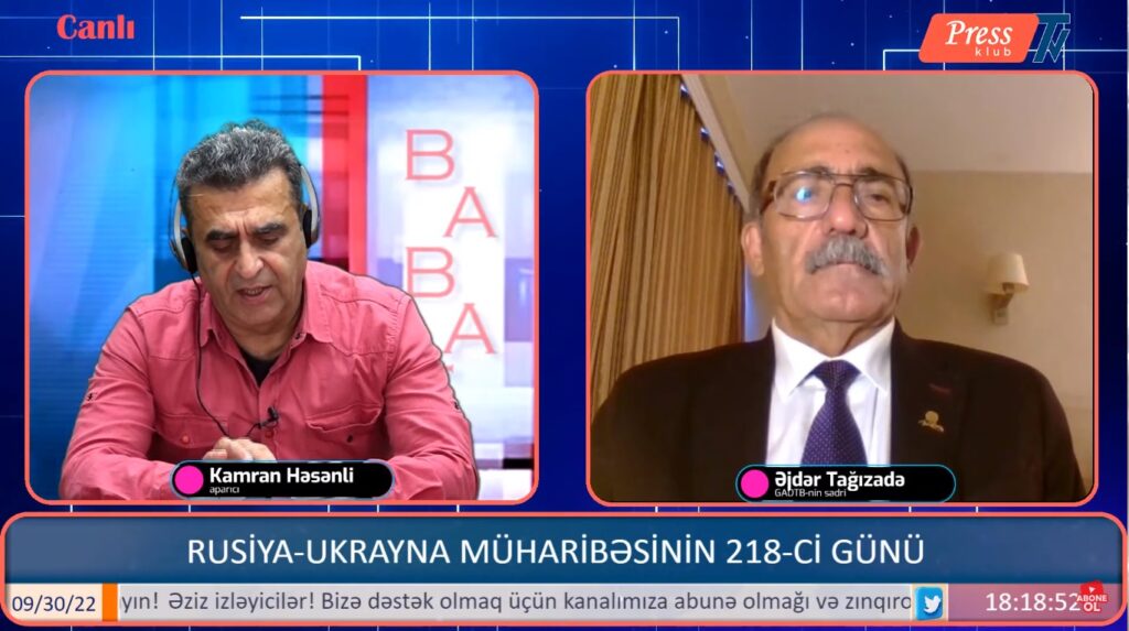 گادتب-نین مطبوعات مرکزینه داخیل اولان معلوماتا گؤره، گونئی آذربایجان دئموکراتیک تورک بیرلیگی (گادتب) باشقانی سایین اژدر بی تاغیزاده پرئس کلوب تی وی-ده “ایران رئژیمی دئوریلیرمی، نه لر اولاجاق؟” موضوعسوندا چیخیش ائدیب.