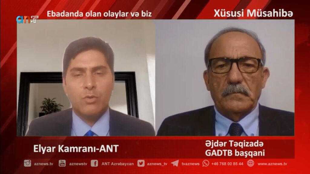 گادتب-نین مطبوعات مرکزینه داخیل اولان معلوماتا گؤره، گونئی آذربایجان دئموکراتیک تورک بیرلیگی (گادتب) باشقانی سایین اژدر بی تاغیزاده آن.ت کانالینا “عباداندا اولان اولایلار و بیز” موضوعسوندا چیخیش ائتمیشدیر.