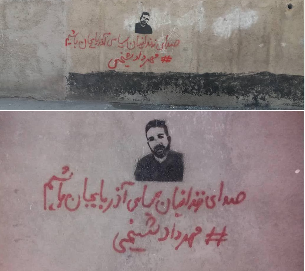 #مهرداد_شیخی و تصویر ثبت شده گرافیتی این فعال در یکی از خیابانها در سطح شهر اردبیل اعتراضیست مدنی از طرف فعالین آذربایجانی نسبت به سیاست های جمهوری اسلامی در قبال فعالین و محکومین سیاسی آذربایجانی محبوس در بندهای مختلف ایران.