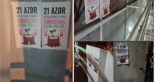 گادتب: جمعی از فعالین حرکت ملی آذربایجان در شهر تبریز همزمان با سالروز ۲۱ آذرماه با نصب و توزیع گسترده پوستر هایی، ۷۸ امین سالگرد تاسیس حکومت ملی آذربایجان را گرامی داشتند «۲۱ آذر، بوتوو آزربایجاندان تورکوستانا گئدن یولدور» عنوان متنی است که با الفبای لاتین به همراه تصویری با …