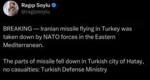 ادامه مطلب »ترکیه: موشک بالستیک شلیکشده از ایران پیش از ورود به حریم هوایی کشور منهدم شد