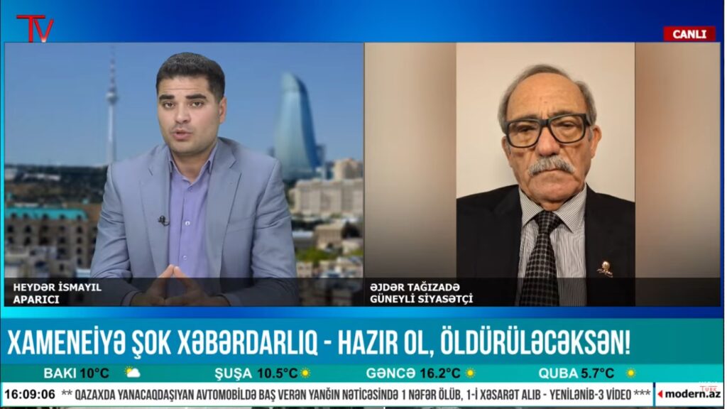 GADTB-nin Mətbuat Mərkəzinə daxil olan məlumata görə, Güney Azərbaycan Demokratik Türk Birliyinin (GADTB) başqanı sayın Əjdər bəy Tağızadə “Media Türk TV”-də “Xameneiyə şok xəbərdarlıq – Hazır ol, öldürüləcəksən!” mövzusunda çıxış edib.