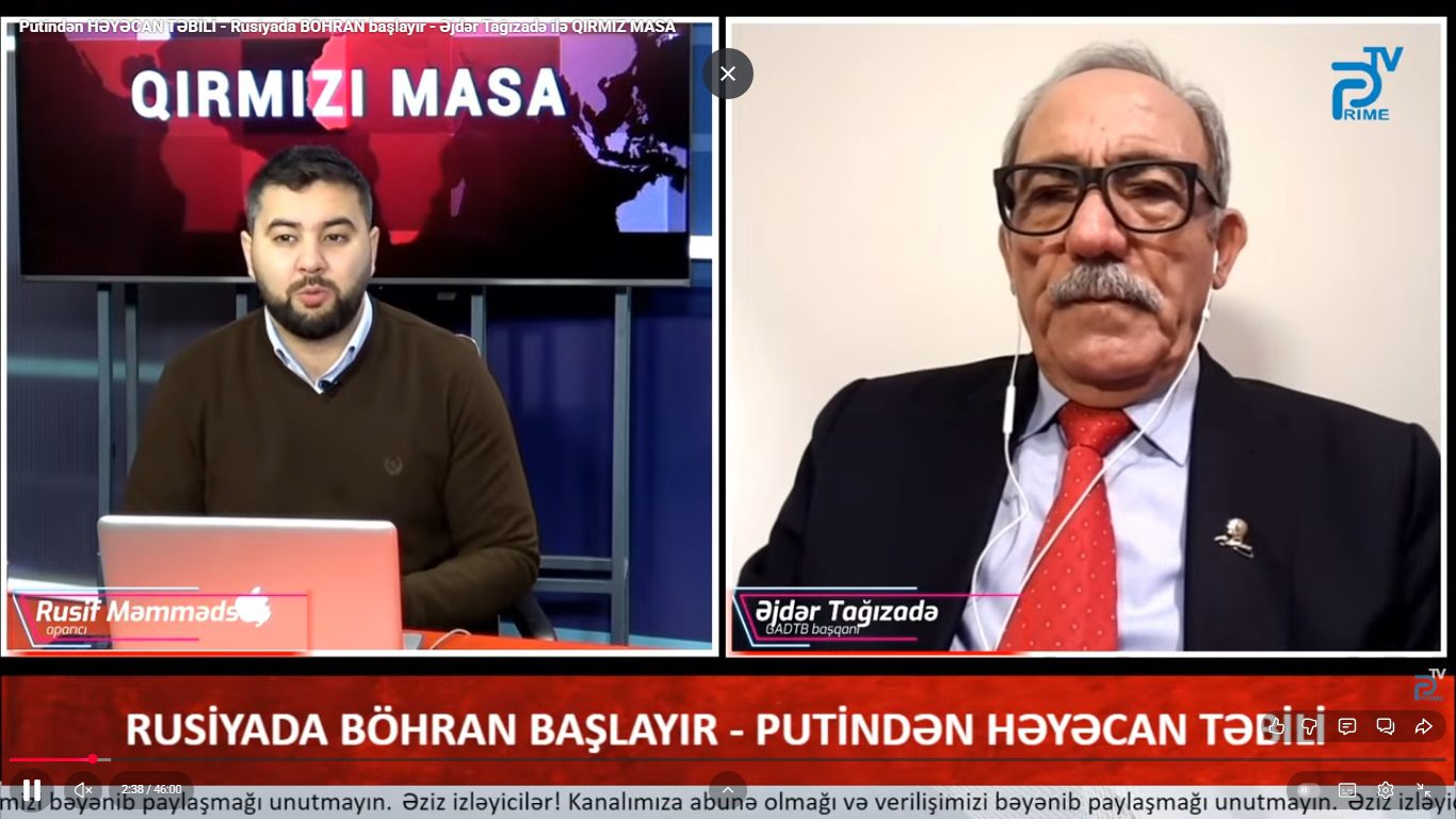 GADTB-nin Mətbuat Mərkəzinə daxil olan məlumata görə, Güney Azərbaycan Demokratik Türk Birliyi (GADTB) başqanı sayın Əjdər bəy Tağızadə “Prime TV”-də “Putindən həyəcan təbili – Rusiyada böhran başlayır” mövzusunda çıxış edib.