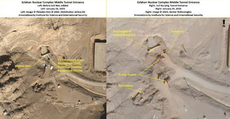 GADTB: İsfahanın Nətənz bölgəsinin yaxınlığında yerləşən “Kuh Koləng” nüvə obyektinin mərkəzi giriş hissəsi tamamilə möhürlənib və cənub girişi 408 kiloqram yüksək dərəcədə zənginləşdirilmiş uranı “silah dərəcəsinə yaxın” şəkildə qorumaq üçün əlavə torpaqla möhkəmləndirilib.