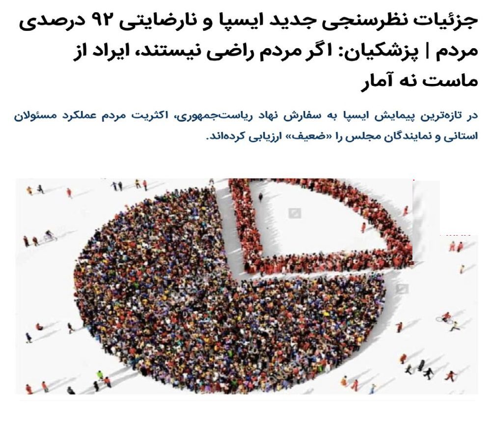 Sorğuya görə, parlament üzvlərinin 58,8 faizi, əyalət başçılarının 36,6 faizi, cümə imamlarının 35,9 faizi, bələdiyyə sədrlərinin isə 34,4 faizi insanlarının problemlərini həll etməkdə olduqca zəifdir. Sorğu, Pezeşkianın ölkənin 16 əyalətinə səfəri ərəfəsində keçirilib./ Azad İran