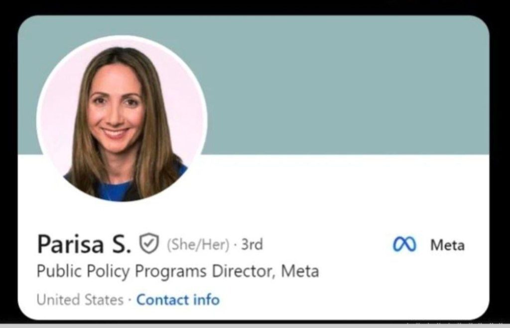 GADTB-nin Mətbuat Mərkəzinə daxil olan məlumata görə, irqçi fars olan və Pəhləvi hakimiyyətində Savakın işgəncə məmuru olmuş Pərviz Sabitinin qızı Pərisa Sabiti Meta Cəmiyyətinin ümumi siyasətləri şöbəsinin müdiri olandan Facebook və İnstagramda Güney Azərbaycanla bağlı postları silir.
