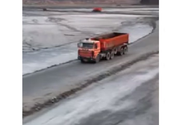Marağadakı Kaveh Soda zavoduna məxsus yüzlərlə qoşqu və bir neçə buldozer və yükləyici gecə-gündüz göl yatağından duz çıxarmaq və yükləməklə məşğuldur.