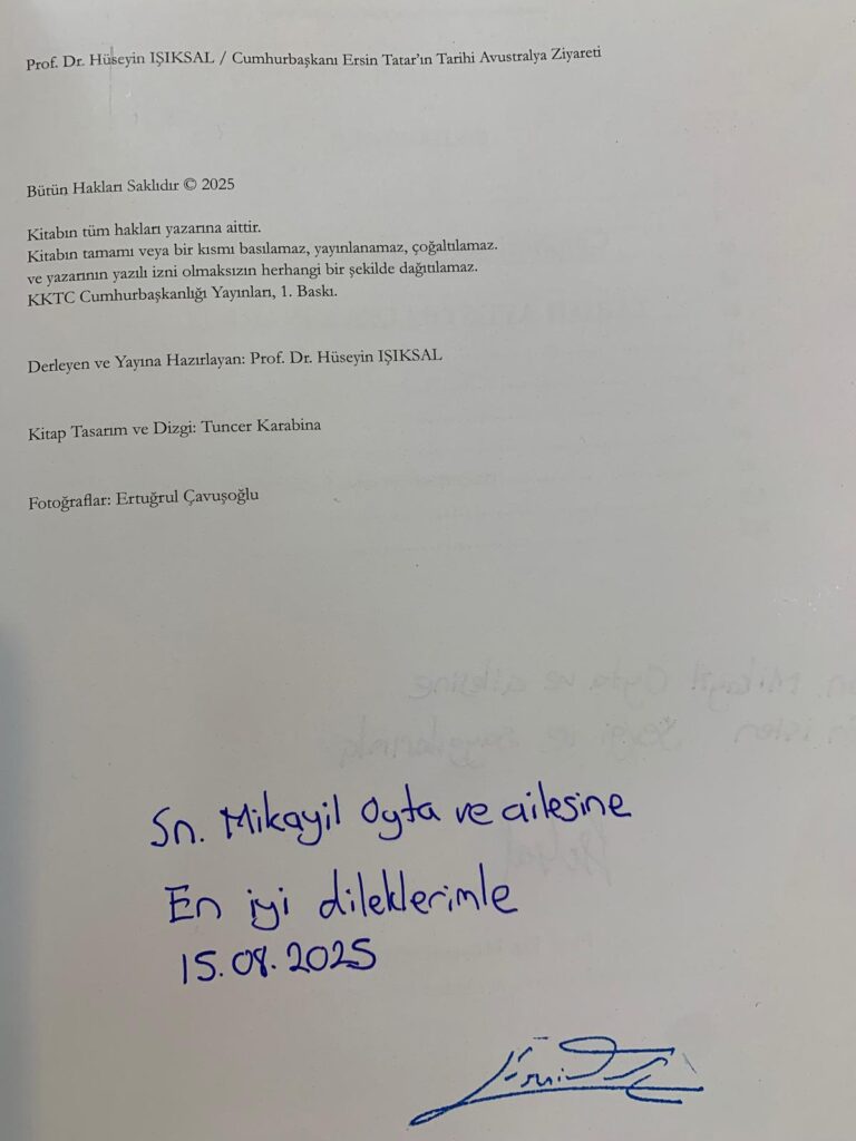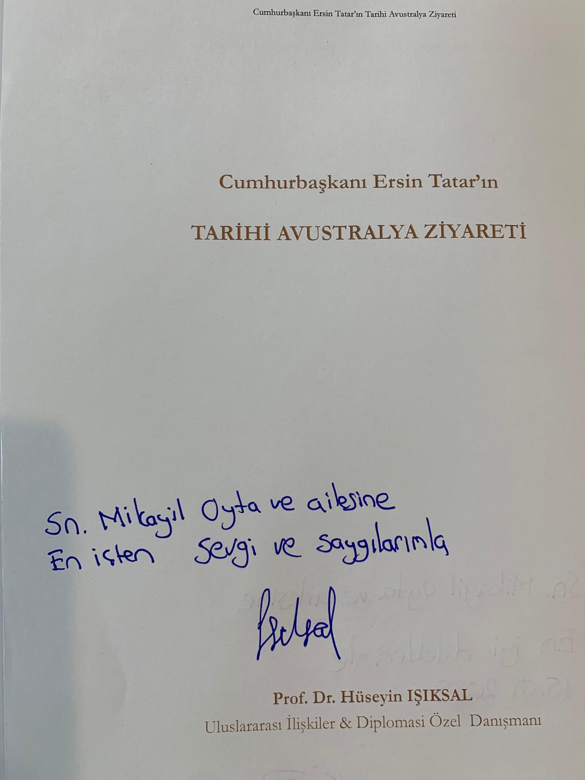 KKTC dövlət mənsubu sayın Nevin Hüseyin tərəfindən xüsusi olaraq təqdim olunan kitablar Quzey Qibris Türk Cümhuriyyətinin prezidenti sayın Ərsin Tatar və KKTC Uluslararası İlişkilər və Diplomatik özəl Danışmani prof. Dr. Hüseyin İşiksalın imzası ilə sayın Mikayil bəyə təqdim edilib.