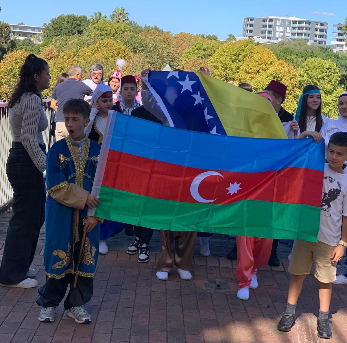Azərbaycan milli geyimi və Azərbaycan bayraqları tədbirdə yüksək səviyyədə nümayiş etdirildi.