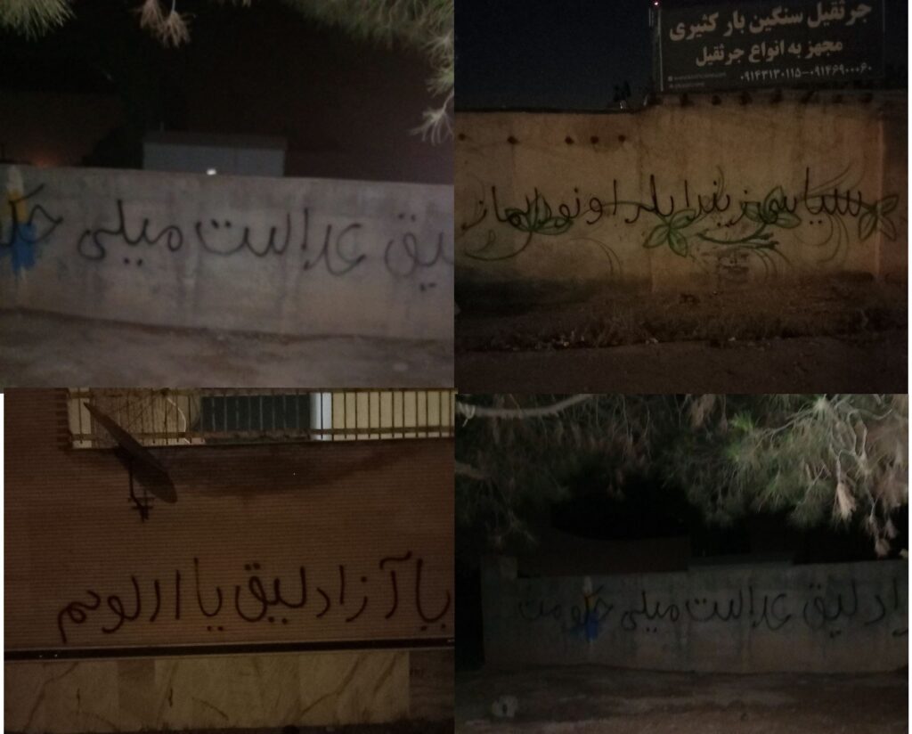 Molla rejimin qüvvələrinin güclü nəzarətinə baxmayaraq divarlara aşağıdakı şüarlar yazılıb: