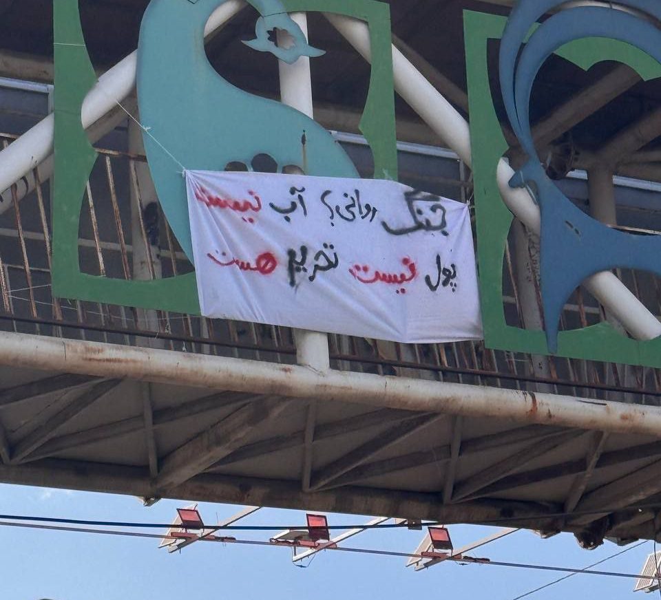 GADTB: Zəncan şəhərində bir qrup əhali şəhərin piyada körpülərindən birinə “Psixoloji savaş? Su yoxdur, pul yoxdur, sanksiya var” sözləri yazılmış plakat asaraq İran hakimiyyətinin idarəçilik uğursuzluğuna, su böhranına və ağırlaşan yaşam şəraitinə etiraz ediblər.